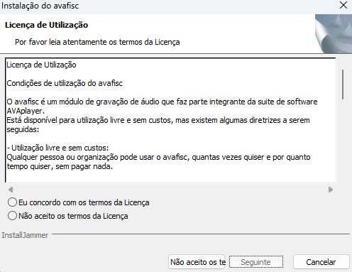 De notar que na janela de Licença de utilização devem ser aceites as condições de utilização, para conseguir avançar: