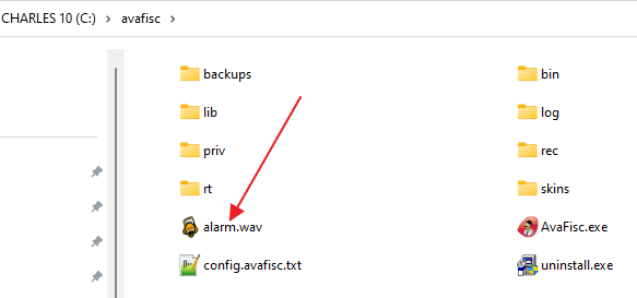 ficheiro alarm.wav existente na pasta de instalação do avafisc, desde que seja mantido